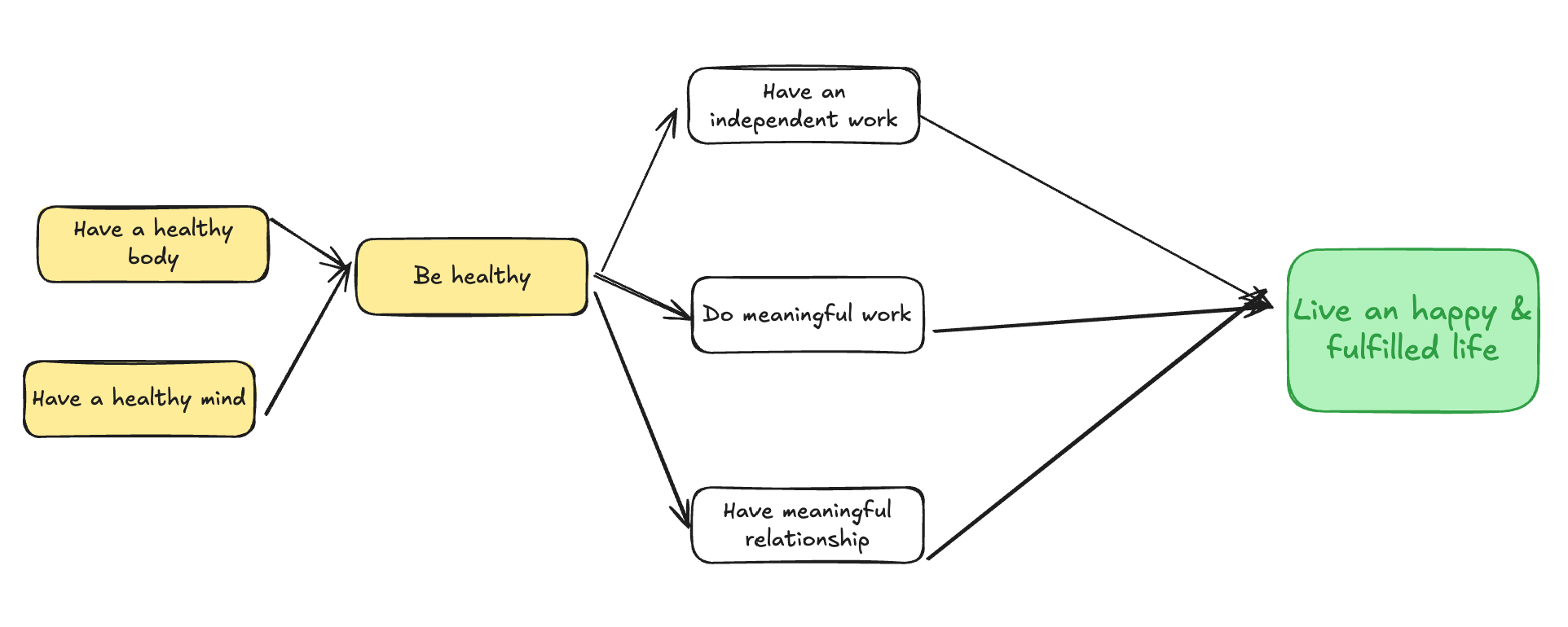 Và khi nhìn work backward, mình nhận ra để có được ba thứ đó, mình phải bắt đầu từ nền tảng cơ bản hơn: một cơ thể khỏe mạnh và một tâm trí khỏe mạnh.