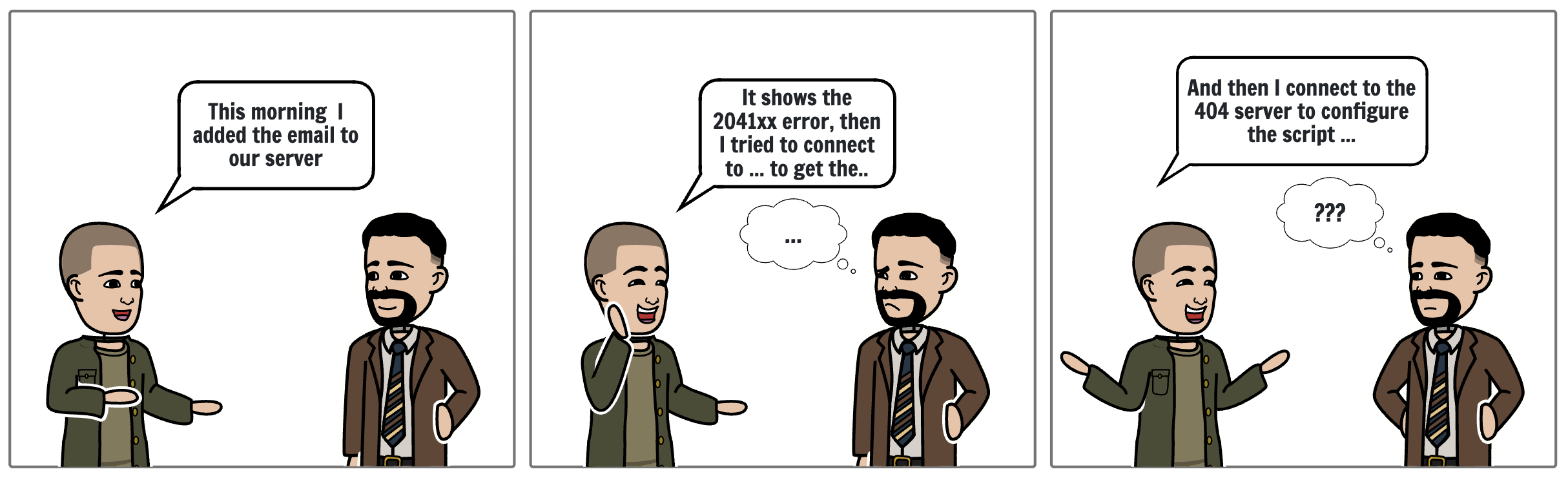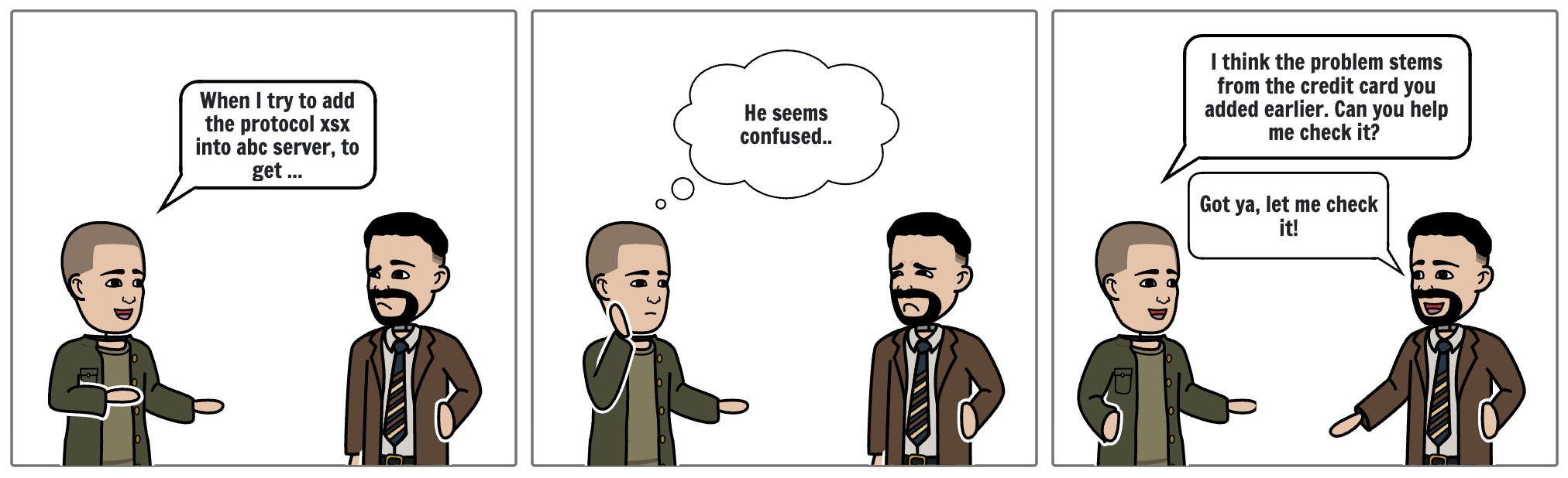 To do that, you will always start the conversation with an overview and a quick call-to-action to the subject (like asking for help).
