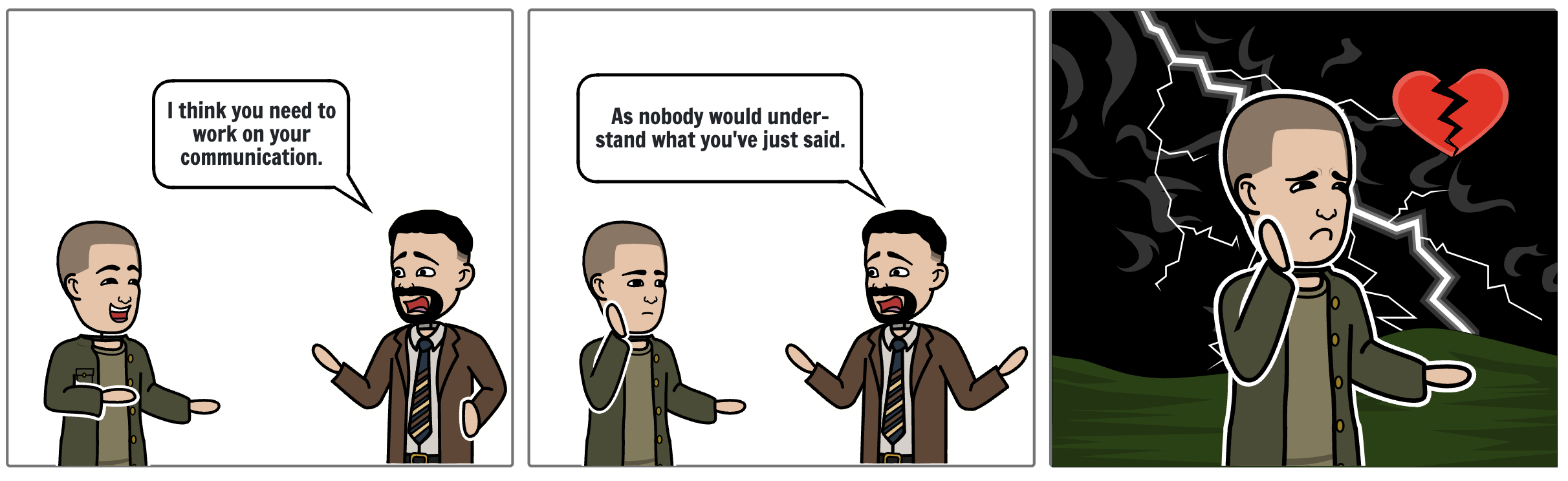 - One of my colleague told me. It cuts deeply into my pride, at that point I know my communication skills suck to the end of the world - and I need to change that immediately.
